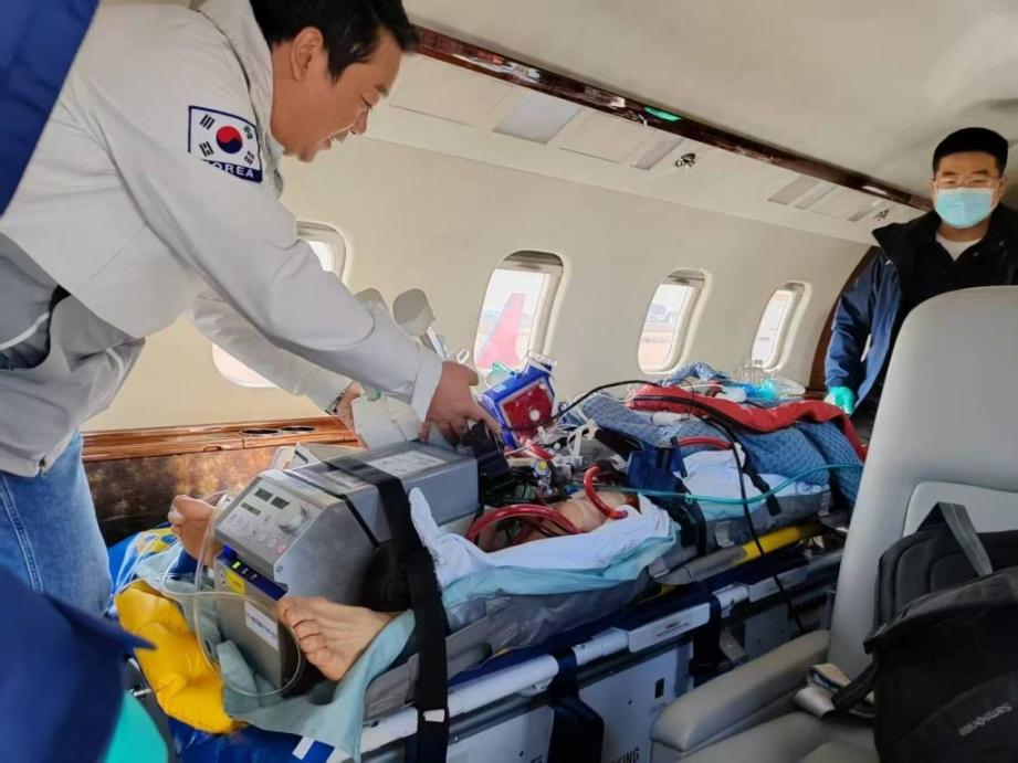 A patient with severe pulmonary infection required ECMO + IABP to maintain vital signs. The transfer was conducted by air ambulance. From departure to arrival, specialist physicians and ICU nurses delivered continuous monitoring and intervention. A mobile power supply protected uninterrupted support. On the tarmac, ECMO was transitioned to onboard systems with zero interruption during the critical handoff. At cruising altitude, the team evaluated ECMO flow and secured the airway, rotating shifts to prevent fatigue and preserve vigilance. This is the standard we apply to ECMO transport services: precision at each step, no gaps in care.