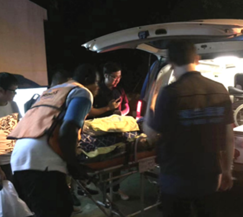 6: On-Site Pickup – Bedside handover is completed; the patient is stabilized for travel and safety checks are documented.